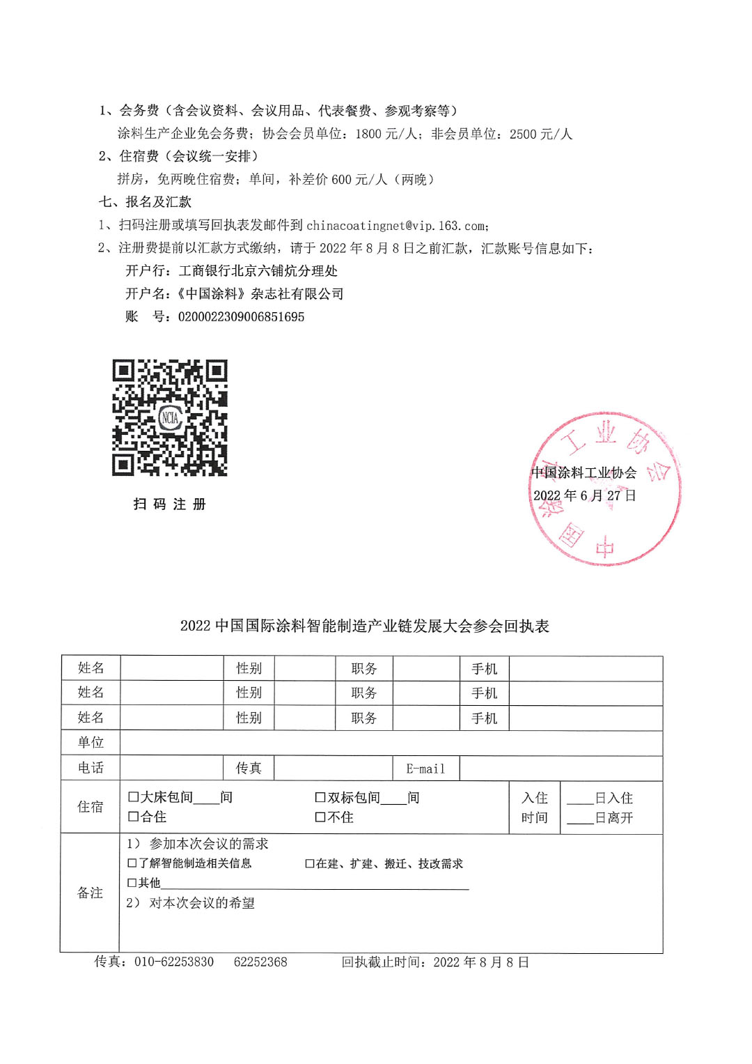 2022中国国际涂料智能制造产业链发展大会参会回执表