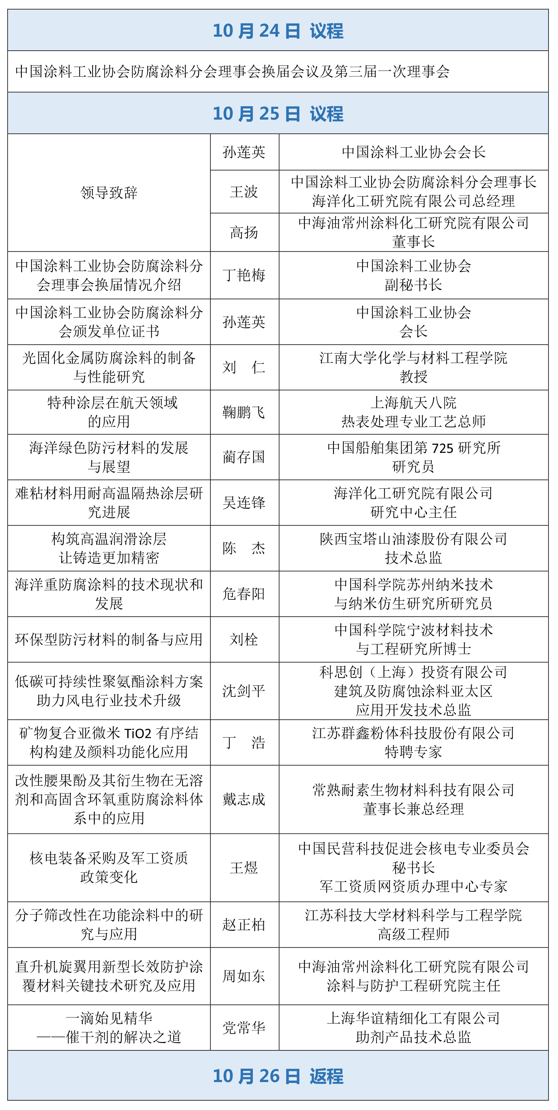 邀请了工业防腐领域各重点企业、科研院所专家学者,就大型机械设备、石油化工设备及管道、航天航空设施设备、核电设施、高铁机车、舰船等防腐技术研究进展与需求做专业报告;同时也邀请了相关涂料企业专家在工业防腐领域新材料、新技术及节能环保等方面做专题演讲,详细议程,敬请期待。