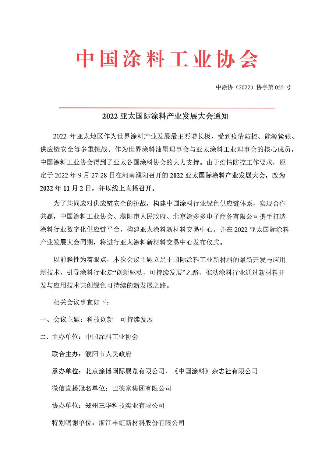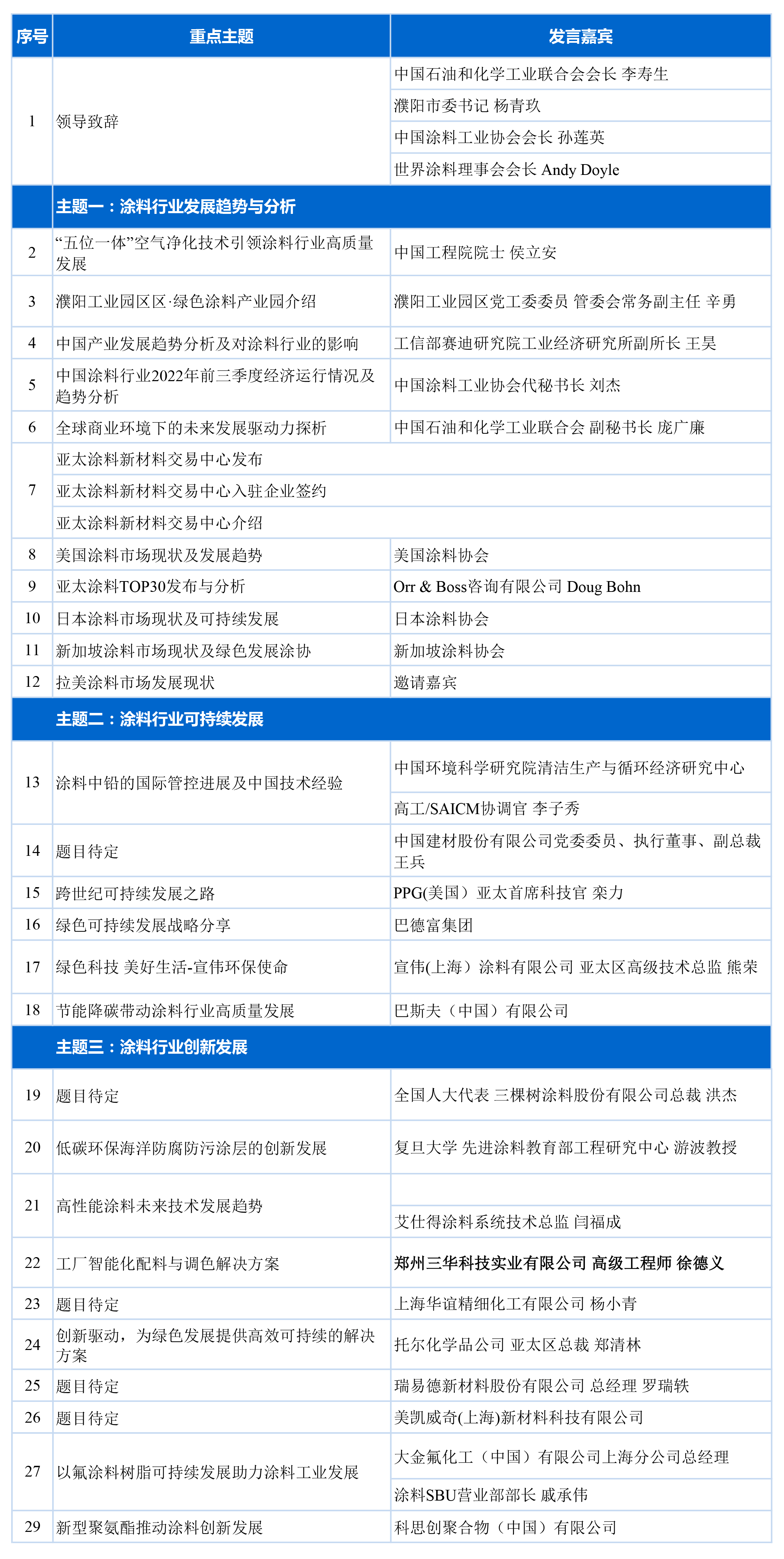 2022亚太国际涂料产业发展大会重点嘉宾及主题