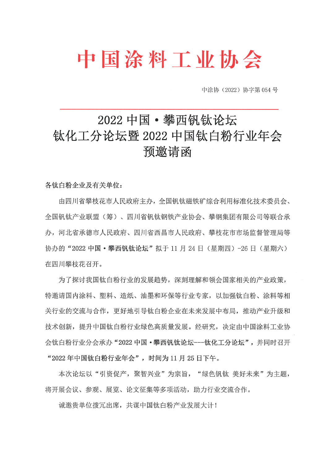 诚邀贵单位拨冗出席,共谋中国钛白粉产业发展大计!