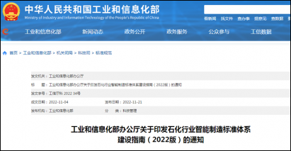 - 政策|工信部印发《石化行业智能制造标准体系建设指南(2022版)》