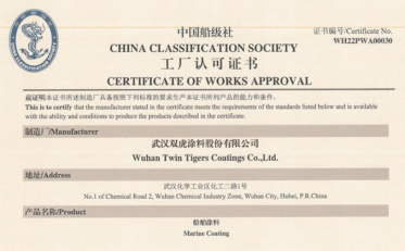 - 动态|双虎涂料取得中国船级社全系列产品认可证书