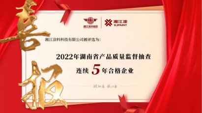- 荣誉|湘江涂料:湖南省产品质量监督抽查连续5年合格
