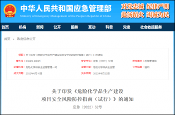 - 危化品丨应急管理部等四部门联合印发《危险化学品生产建设项目安全风险防控指南(试行)》
