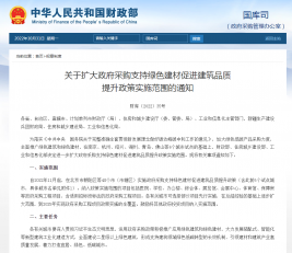 - 政策|财政部等三部门印发通知进一步扩大政府采购支持绿色建材促进建筑品质提升政策实施范围