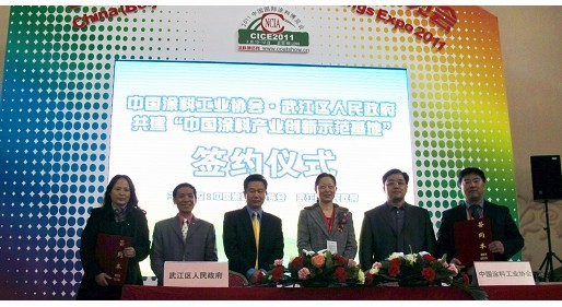 2011年3月10日,期盼已久的“2011中国(北京)国际涂料博览会”在北京展览馆隆重开幕。作为博览会重头戏之一,best365中国官方网站与武江区人民政府在开幕式当天,就共建国内首个“中国涂料产业创新示范基地”举行签约和授牌仪式。此是继2010年1月中涂协与沈阳铁西区共建“中国涂料沈阳产业园”后的又一涂料产业园诞生。此将为加快涂料产业结构调整及升级步伐奠定了基础。