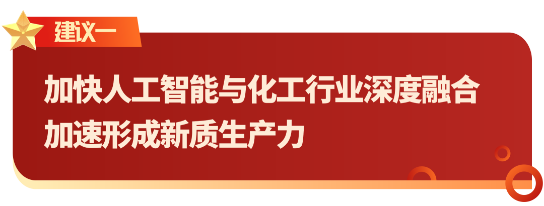 建议国家层面对制造业数字化转型编制指导性的规划意见,鼓励人工智能在化工行业典型应用场景先行先试,尤其是在化工材料分子发现、分子逆向合成、材料大模型、工业设备故障预警、生产工艺优化等化工制造业场景。