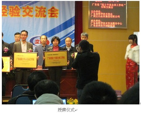 2011年1月21日,广东省“院士专家企业工作站”经验交流会在广州科学馆举行。中国科学技术协会原书记处书记宋南平、广东省人民政府副秘书长李捍东、广东省科学技术协会党组书记兼常务副主席梁明等领导和来自珠三角各市级科学技术协会代表及建站的22家企业、12家进入第三批建站的企业代表参加了此次会议。嘉宝莉集团作为广东省第三批、涂料行业首家“院士专家企业工作站”的获得者,应邀出席了会议。