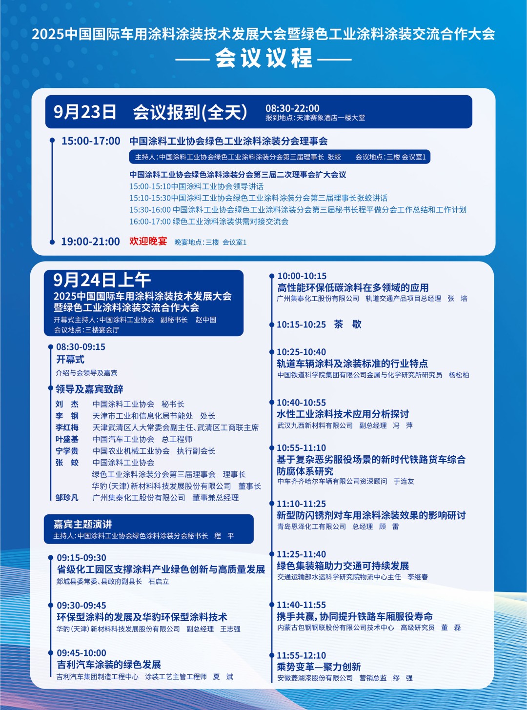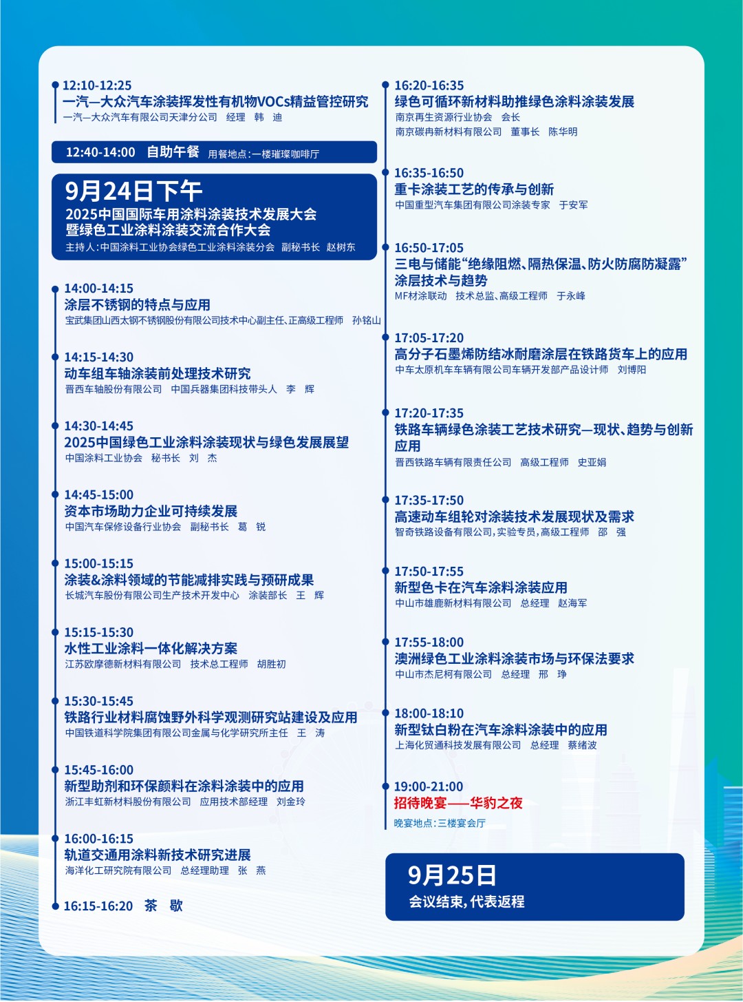 9月24日全天 2025中国国际车用涂料涂装技术发展大会暨绿色工业涂料涂装交流合作大会