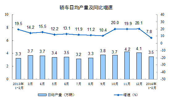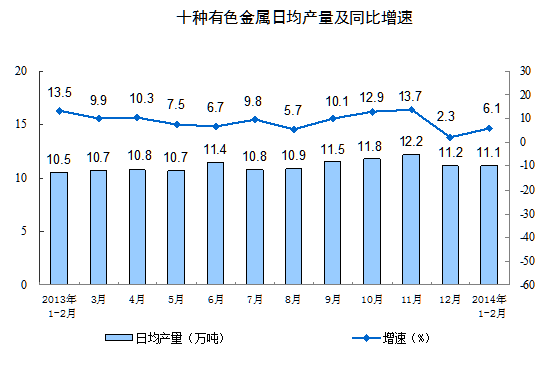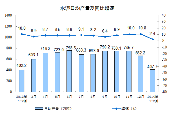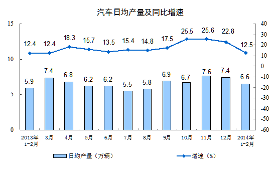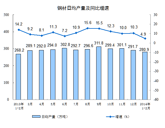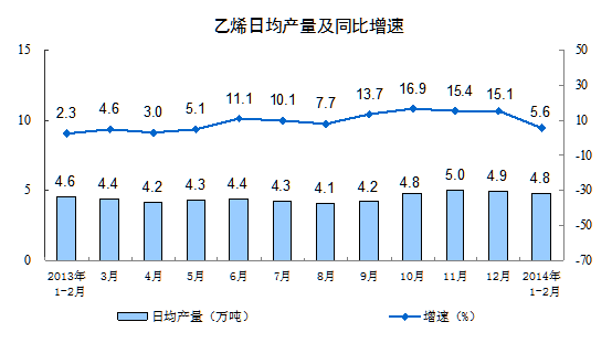分产品看,1-2月份,多种产品同比增长。其中,乙烯281万吨,同比增长5.6%;水泥24052万吨,增长2.4%;钢材16573万吨,增长4.9%;十种有色金属656万吨,增长6.1%;汽车386.9万辆,增长12.5%;轿车206.9万辆,增长7.8%;发电量8162亿千瓦时,增长5.5%;原油加工量7878万吨,下降1.0%。