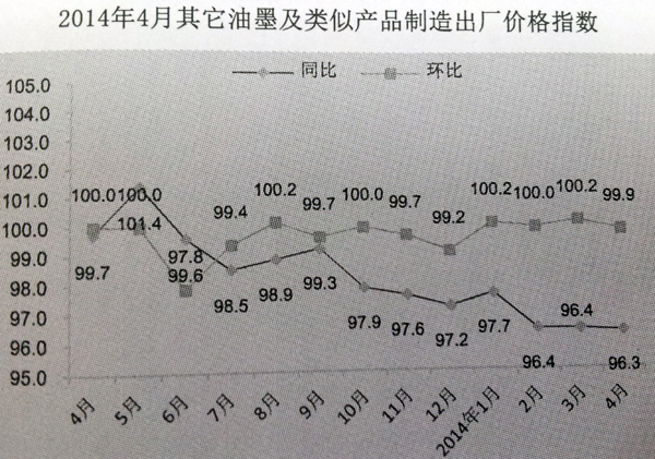 涂料:2014年4月其他油墨及类似产品制造出厂价格指数