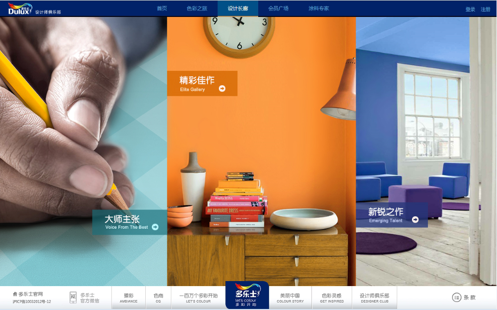 6月16日,多乐士设计师俱乐部网站全新上线,据了解,新上线的网站 包括了“色彩之旅”、“设计长廊”、“会员广场”、“涂料专家”四大板块,最大程度地满足不同设计师的需求,为设计师打造一个交流,学习,互动,成长的多元平台。