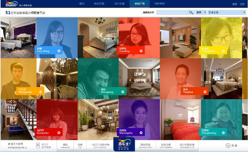 多乐士设计师俱乐部作为启迪中国室内设计师设计灵感的伙伴。全力为广大设计师搜罗全球领先色彩潮流,本土装饰资讯,打造高端个人展示平台,定制丰富的互动体验。