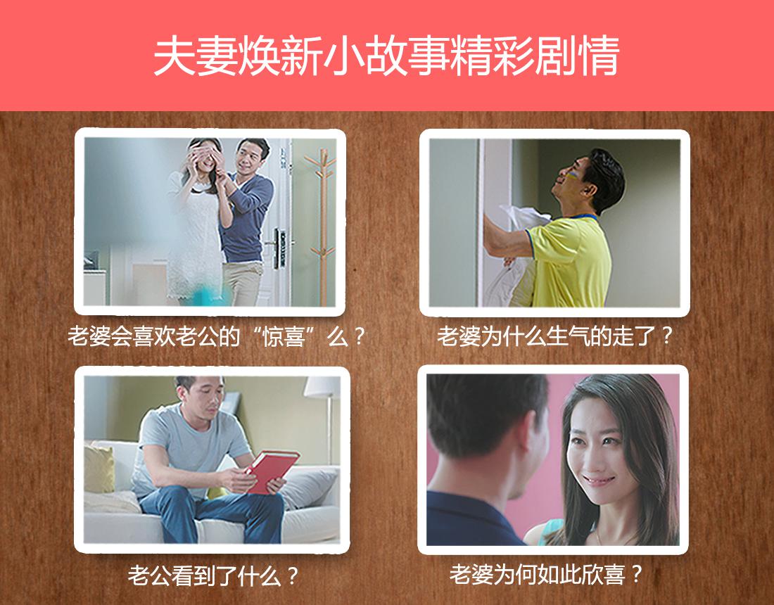 短剧演绎了一对可爱的年轻夫妻在世界杯期间发生的一段有趣而浪漫的生活小插曲。四年一次的世界杯让丈夫误解及忽略了妻子的心情,丈夫自以为的新家和足球夜“惊喜”变成了夫妻矛盾的导火索。在小狗乐乐的帮助下,丈夫终于意识到妻子需要的是一个温馨浪漫的家。 当浪漫的玫红充满整个屋子,所有情绪都烟消云散。