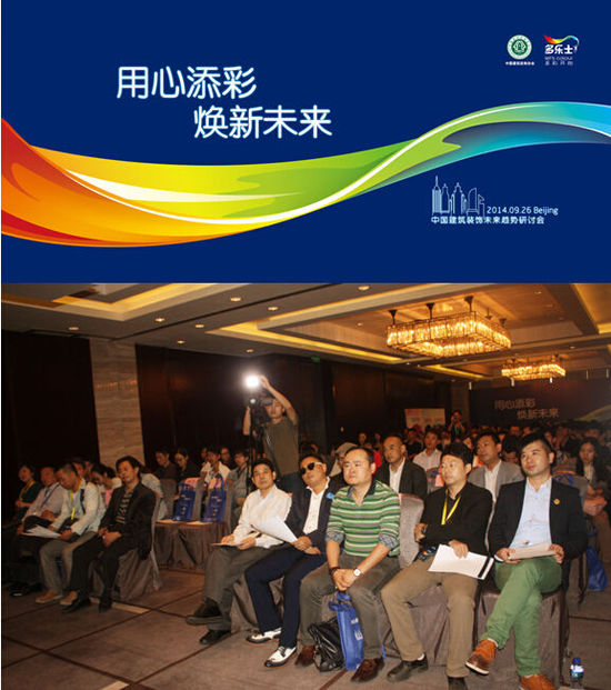 2014年9月26日,“用心添彩,换新未来”中国建筑装饰未来趋势研讨会在北京王府井希尔顿酒店举行。此次研讨会围绕“用心添彩,焕新未来”的主题而进行,与北京的设计师们一同畅谈设计,聚焦色彩流行趋势。此次会议由中国建筑装饰协会主办,多乐士设计师俱乐部独家支持。