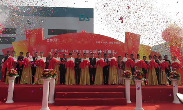君子兰涂料(天津)有限公司新厂开业典礼在2014年10月15日上午隆重举行,来自中国涂料协会、木门协会和君子兰集团上海、成都、广东等分公司君子兰人欢聚一堂、共襄盛举,共同庆祝君子兰涂料(天津)有限公司隆重开业。