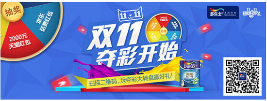 一年一度万众瞩目的双11购物狂欢季即将到来,多乐士夺彩转盘提前启动!动动手指转一转,这个双11,想多出彩,就夺出彩!赶紧关注多乐士微信,参与夺彩大转盘,不仅可以享受到双11期间多乐士的特价产品,更有天猫红包、京东话费红包,家易涂免费基检钜惠好礼折上折!夺彩来袭,最超值的多乐士家装福利,即刻参与!