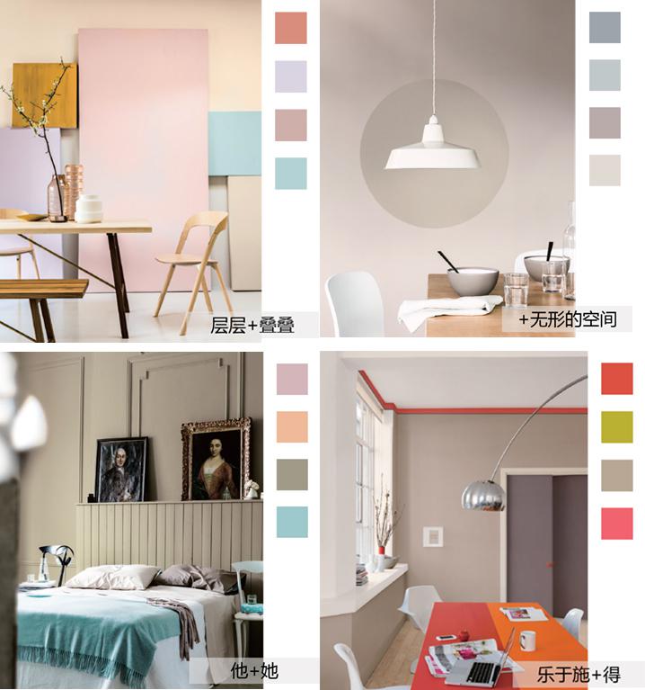 2015年最重要的趋势是寻觅和发现能为生活带来改变的那一抹额外色彩。五个富有艺术人文气息的设计故事、五个缤纷灵动的色盘呈现五大家居趋势,包括透视人与自然关系的“大自然+小自我”、展示多维化生活的“层层+叠叠”、重新定位空间的“+无形的空间”、颂扬异性之美的“他+她”、以及展开新交流革命的“乐于施+得”,为消费者从中提供丰富的家居色彩灵感。