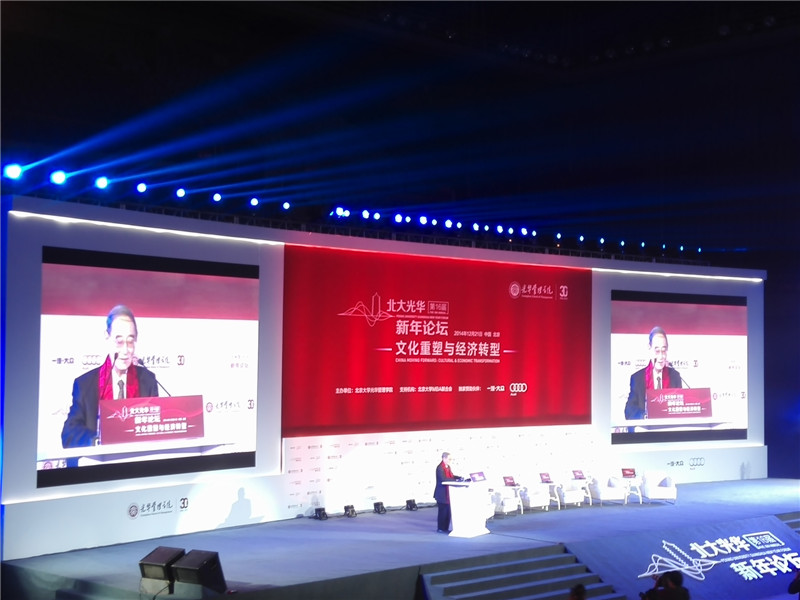 12月21日,研修班学员参加了以“文化重塑与经济转型”为主题的第十六届北大光华新年论坛。本届论坛聚焦中国经济发展的软实力与硬实力,探讨以创新创业精神重塑文化优势,以经济平稳转型引导结构升级,释放双重动力,筑梦复兴之路。北京大学光华管理学院名誉院长厉以宁教授等领导嘉宾及来自海内外经济领域的知名学者、企业家代表出席会议。与会嘉宾聚首燕园,共同探讨社会经济发展的热点问题,总体把握中国经济发展的总趋势。与会嘉宾表示,未来中国经济想要得到持续的增长,一方面要依靠各行业持续不断的创新,同时还要打造与中国经济发展相匹配的文化价值体系。论坛以文化软实力如何助力中国经济智慧转型、实现务实转型为主要议题,为中国经济发展建言献策。在党的十八届三中全会提出要建立健全现代化文化市场体系的历史背景下,今年论坛将目光聚集“文化重塑与经济转型”,将直面当前社会发展的复杂态势,精准把握时代脉搏。在主题演讲环节,厉以宁发表了题为《论蓝领中产阶级的成长》的报告。在两场高峰对话环节中,嘉宾们围绕论坛主题“文化重塑与经济转型”展开了深入的交流和精彩的对话,既谈到了微观的组织内部文化,也谈到了宏观层面的文化塑造;话题涉及企业文化的建设,中西文化的交融、传统文化的回归。嘉宾们各抒己见,妙语连珠,引来现场观众的热烈掌声。SOHO中国有限公司董事长潘石屹、京东集团董事局主席兼首席执行官刘强东均发表了精辟观点。下午,主题分别为“制度创新与转型升级”、“创新在后互联网时代”、“企业转型,路在何方?”、“中国企业国际化的机遇与挑战”、“大数据时代的品牌建设”的奥迪分论坛在光华管理学院举行,嘉宾们在对话中开启了思想碰撞之旅,探讨中国经济发展的新路径。