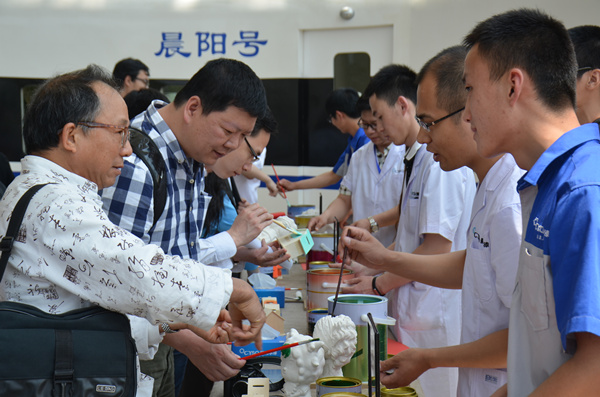 5月16日,由香港大公报副总编辑兼副总经理徐荷带队的港澳媒体高层采访团一行18人来到河北晨阳工贸集团有限公司参观采访。期间,采访团一行观看了晨阳水漆的宣传片,参观了成品库房和生产车间,并在试刷体验区亲身试刷,感受晨阳水漆环保健康的特性。