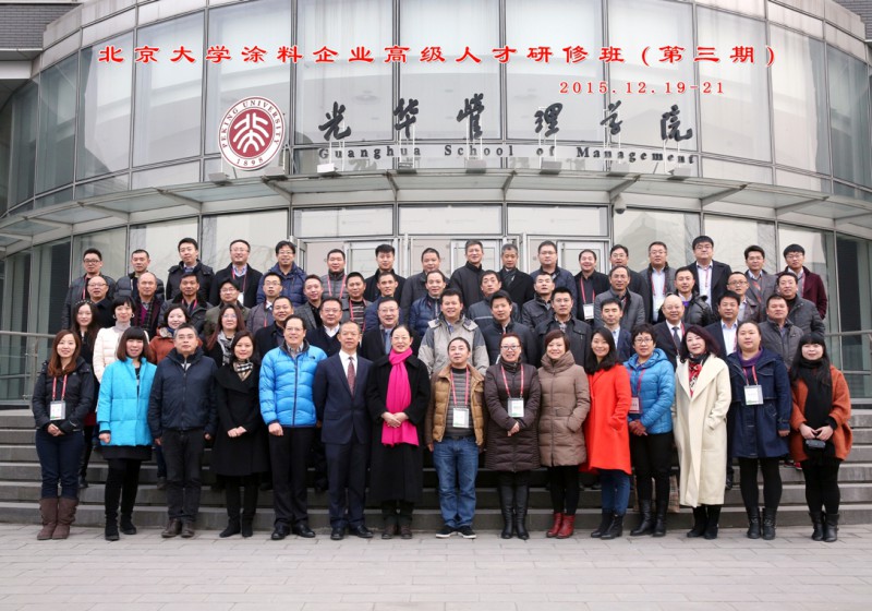 回顾3天的学习,来自涂料及相关行业优秀企业的70名领导精英不仅聆听了著名经济学家、北大光华名誉院长厉以宁教授厉以宁、环境保护部副部长吴晓青等不同领域的知名人士对国家“十三五”规划的深入探讨、对法治社会的意义和作用、中国企业转型中职业经理人制度的逐步实行、“十三五”规划中绿色发展理念、创新发展理念、“中国制造2025”的精彩阐述,而且分享了北京大学光华管理科学与信息系统系邱凌云副教授、北京大学光华管理学院市场营销系符国群教授、北京大学政府管理学院包万超教授分别为学员们带来“从电商的发展看互联网+对传统行业的影响”、“品牌营销”、“未来十五年的中国社会与法律变革(2015-2030)”精彩课程。整个课程大到国家的发展目标、战略选择、法治建设、“十三五”规划,小到企业的品牌建设、互联网带来的影响,不仅开阔了眼界,启迪了思想和智慧,而且进行了面对面对话,为行业、企业今后的发展指明了方向,给予了指导。相信,中国涂料行业会在下一个五年、下一个100年再创辉煌!