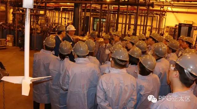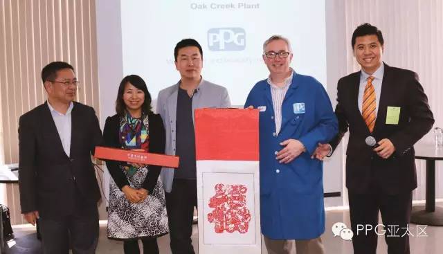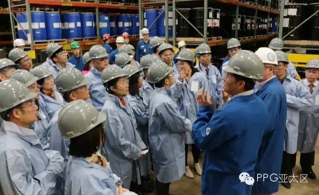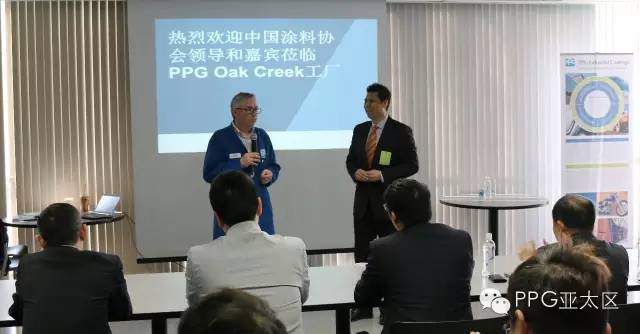 整个访问历时两个半小时。PPG亚太区企业及政府事务部企业传播总监Hunter Lee为代表团展示了 PPG公司全球及亚太区介绍,并播放了公司最新的题为“PPG,我们保护并美化世界”的企业宣传片。随后,厂长Jack Marshall介绍了 Oak Creek工厂的历史和概况,并引导代表团参观了厂区和部分涂料车间及仓库。