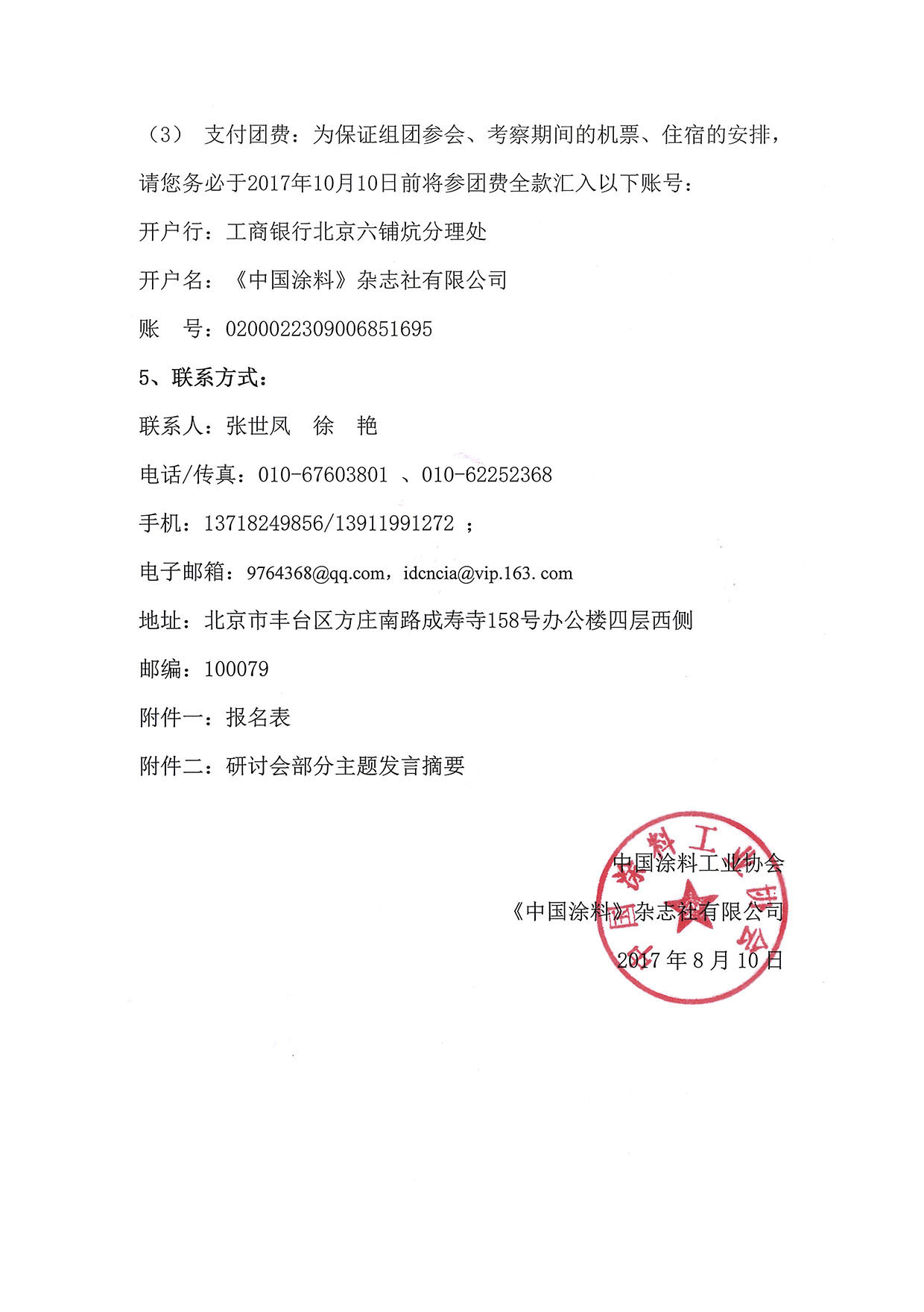 开户名:《中国涂料》杂志社有限公司