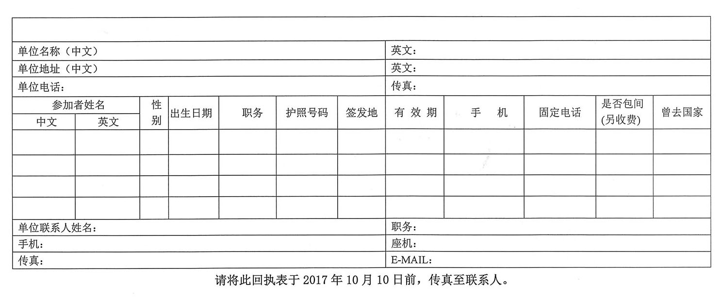 2017年赴欧洲参加研讨会回执表