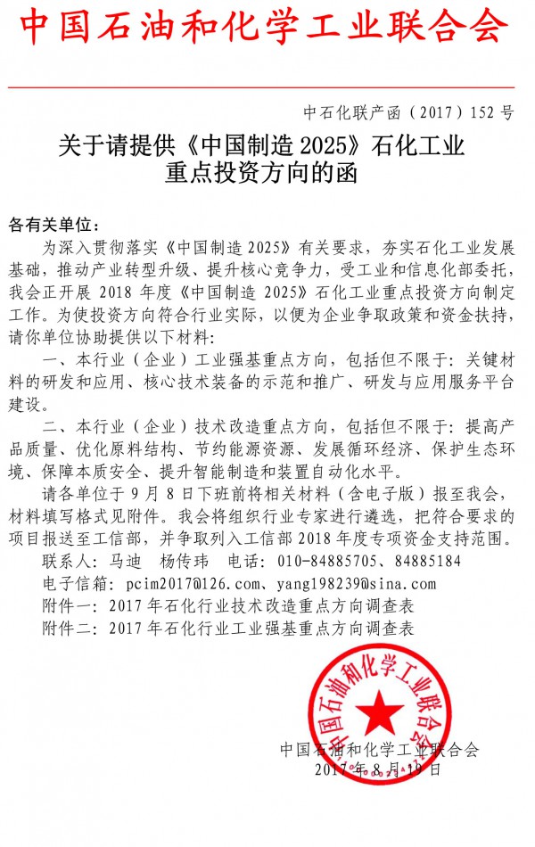 通知:中石化联产函(2017)152号-提供2025中国制造投资方向 |