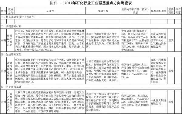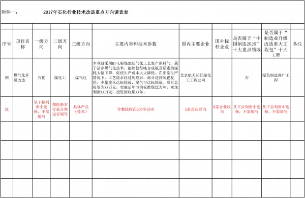 附件:2017年石化行业技术改造与工业强基重点方向调查表 |