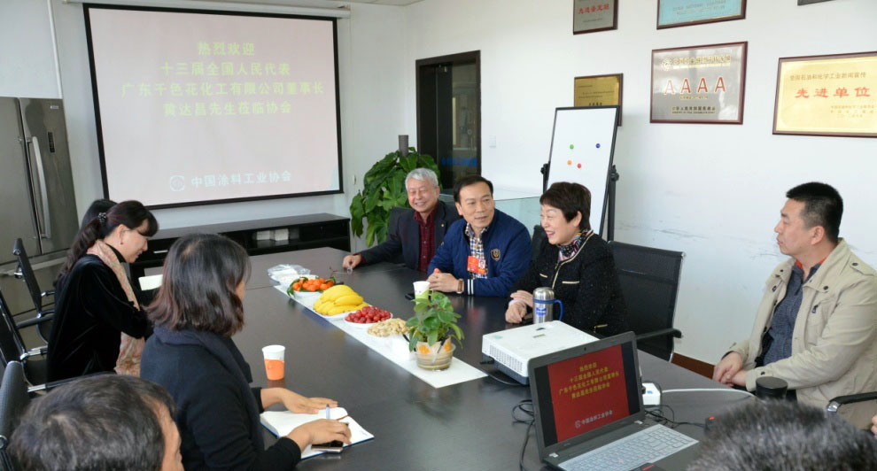 孙莲英会长与人大代表黄达昌就涂料行业发展进行亲切交流