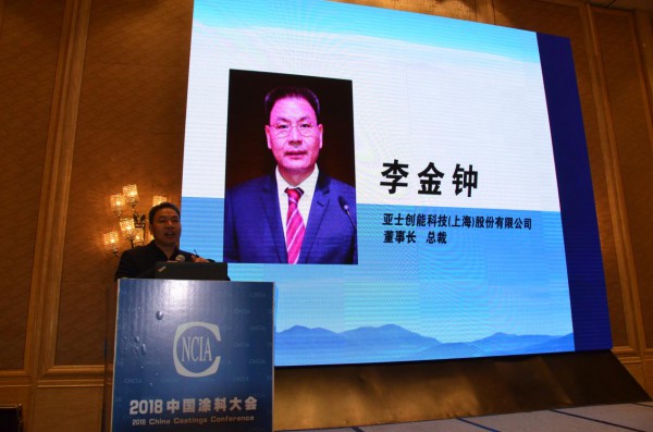 主持人亚士创能科技(上海)股份有限公司董事长李金钟宣布绿色建筑、装饰涂料论坛开始