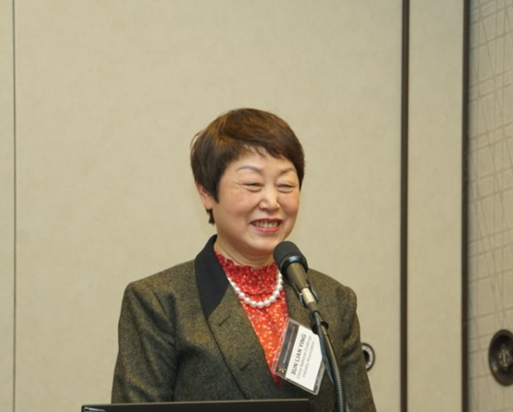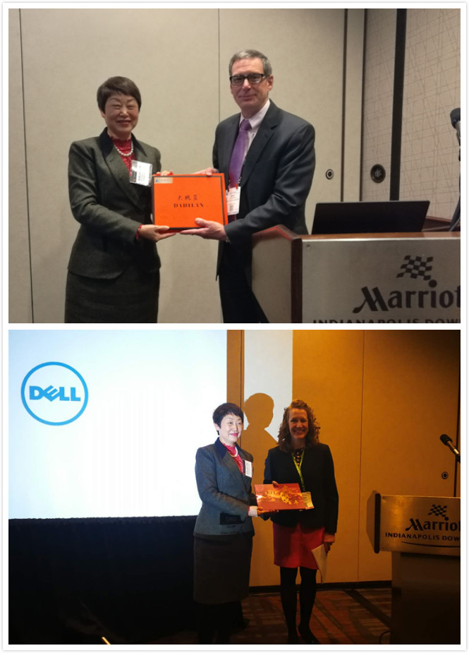孙莲英会长向美国涂料协会赠送《中国涂料工业百年纪念邮册》等