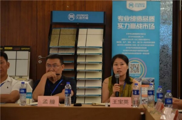 孟艟理事长向江苏久诺建材科技股份有限公司颁发副理事长单位铜牌
