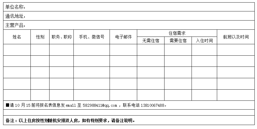 3)会务费:本次论坛不收会务费,为东莞以外参会企业免费提供11月6日及7日两晚食宿,差旅费自理。(参展商不享受此会议福利)