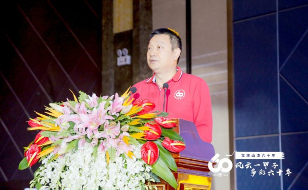 宝塔山漆董事长李松财代表陕西宝塔山油漆股份有限公司感谢各位嘉宾莅临会场,并向在这60年发展历程中做出贡献的一代又一代宝塔山漆的员工致以崇高的敬意。回首来路,陕西宝塔山油漆股份有限公司始建于1958年,历经60年的发展,共计生产涂料68万吨,销售收入60亿元,纳税3.35亿元,累计创造年工作岗位17000人次,如今已经成为中国西部12省最大的涂料品牌。