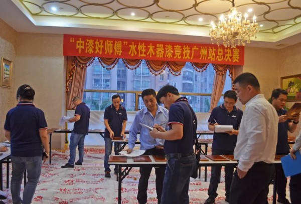 2018年10月20日,中华制漆举办的“中漆好师傅”水性木器漆竞技广州站总决赛在广州克莱顿酒店顺利举行。中漆集团执行董事李广中先生、中华制漆区域总经理吴爱坤先生、广州区域经理张欣先生、技术服务部卢国强先生、市场部李红梅女士以及涂图坊董事长张圣华先生、财务总监黄煜梅女士、总经理黄镜明先生、翻新吧总经理杨雪峰先生受邀出席,油工师傅踊跃报名,积极参与,现场气氛热烈,总决赛取得圆满成功。