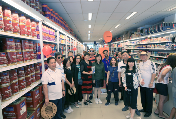 首先,考察团一行来到了位于“亚马逊心脏”玛瑙斯的Cocil建材城,其是当地最大的建材市场,也是当地居民家庭装修材料采购首选之地。其中的涂料销售门店以销售巴西本地品牌为主,以及各种涂装工具,批发与零售兼顾。如巴西本地生产的且占有最大市场份额Suvinil品牌,其品类几乎涵盖了所有家装用涂料,涉及墙面涂料、木器涂料等,满足了巴西当地居民DIY的需求和涂鸦的爱好。