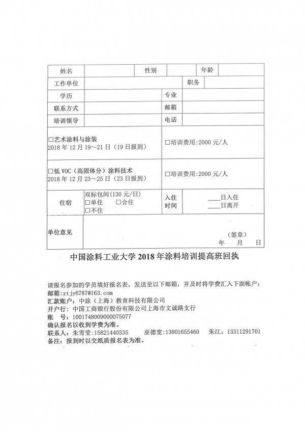 请报名参加的学员填好报名表,发送至以下邮箱,并及时将学费汇入下面帐户: