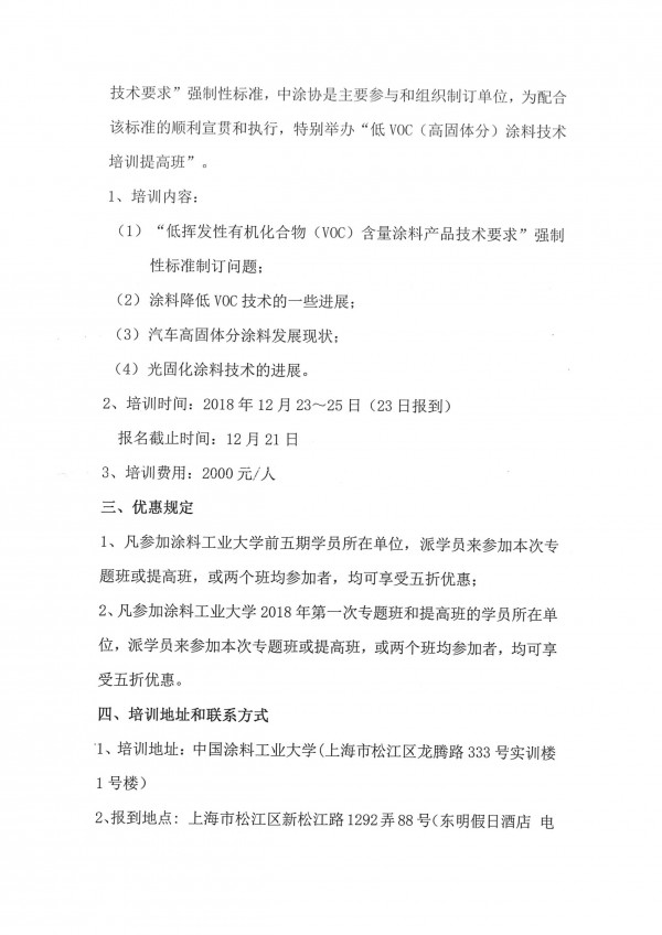 2、凡参加中国涂料工业大学2018年第一次专题班和提高班的学员所在单位,派学员来参加本次专题班或提高班,或两个班均参加者,均可享受五折优惠。