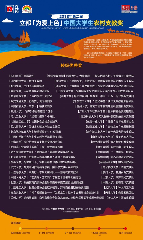 2018第二届立邦「为爱上色」中国大学生农村支教奖获奖名单