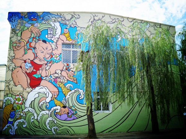 这次举办活动的北京昌平振华学校,一所全部为打工子弟就读的学校,也是2016「为爱上色」艺术+彩绘的学校之一。学校邀请的文那是2016年度邀请的唯一一位中国艺术家。墙画以中国古典神话为基础,融合了丰富的想象,用浓郁饱满的东方色彩描绘了一个充满童趣的奇幻世界,祝福孩子们在爱与关怀中汲取知识、获得力量、茁壮成长。