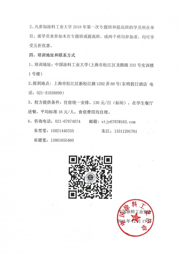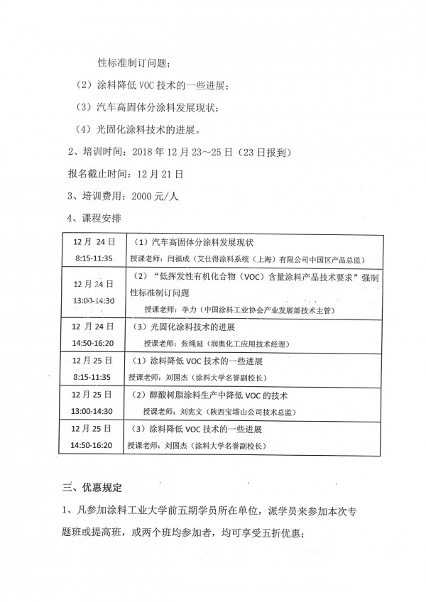 2、凡参加涂料工业大学2018年第一次专题班和提高班的学员所在单位,派学员来参加本次专题班或提高班,或两个班均参加者,均可享受五折优惠。