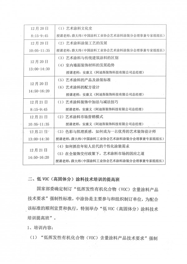 二、低VOC(高固体分)涂料技术培训的提高班