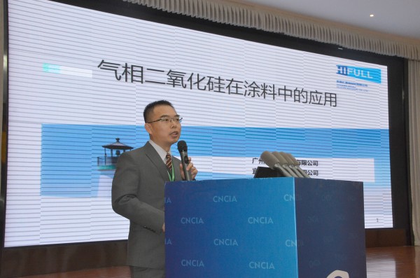 宜昌汇富硅材料有限公司段先健副院长做了《气相二氧化硅在涂料中的应用》报告。气相二氧化硅在涂料中有着悠久的使用历史,能够增稠、触变、防流挂,提高涂层的耐腐蚀性,此外还能作为抗刮擦剂、耐磨剂、稳定剂、补强剂,是一种多功能的原料。段院长表示,不同的改性剂赋予气相二氧化硅不同的性能。