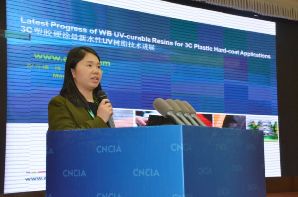 湛新树脂(中国)有限公司程喜娥女士做了《3C市场水性UV技术的最新发展》报告。从3C电子和工业塑料涂料的现状和趋势、3C电子和工业塑料涂料为什么使用水性UV产品、水性UV在3C电子和工业塑料涂料难点、水性UV技术及突破以及水性UV推荐方案5个方面展开,水性UV的应用开始从传统木器涂料扩展到塑胶、薄膜、真空镀层、金属、玻璃等涂层。