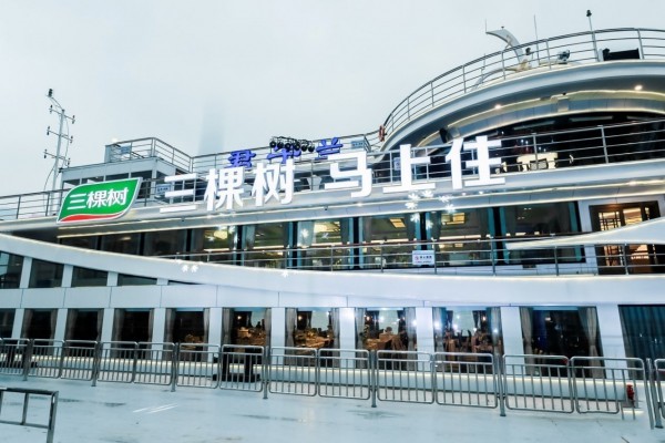 这艘“三棵树”冠名的游轮,亮起了两枚灿烂美丽的三棵树LOGO和“三棵树马上住”的品牌广告。游轮沿黄浦江顺流而下,与外滩两岸华美的灯光交相辉映。嘉宾们坐在船上,背靠繁华的上海滩,耳听悠扬的旋律,尽享微风美景,共同庆祝三棵树上海全球营销中心成立。