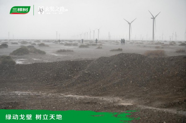 三棵树戈二团队在经历数小时恶劣天气所带来的挑战后,天空放晴!雨后的丘陵地势泥泞不堪,行走没有最难只有更难,全身湿透、手麻木、脚起泡、腿抽筋、踝伤、膝疼…尽管困难无数,三棵树人一路上相互打气,相互扶持,没有一个人弃赛,这也成为茫茫戈壁中别样的风景!一个个挑战自己、挑战自然的故事在此上演。