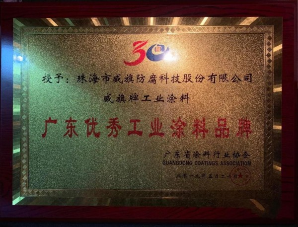 广东省涂料行业协会在本月20日迎来三十周年生日,当天在庆典活动中,协会会长陈冰向威旗科技等多家知名企业颁发了“优秀工业涂料品牌”奖牌。