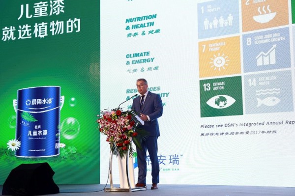 在谈到绿色涂料发展趋势问题上,帝斯曼全球总监Martin指出,植物基是继溶剂性、水性之后的一种更可持续的涂料技术,它以农作物为原料,经过特殊加工,将之转化为生物基材料结构,形成植物基高聚合物,最终得出植物基绿色环保树脂,性能卓越、更环保。随着人们品质生活的日益升级,更可见、可触摸的真正环保产品将愈发受到青睐,本次携手晨阳水漆,将为消费者打造高端绿色安全的居家环境,呵护人类健康,为构建可持续发展的宜居环境共同努力。